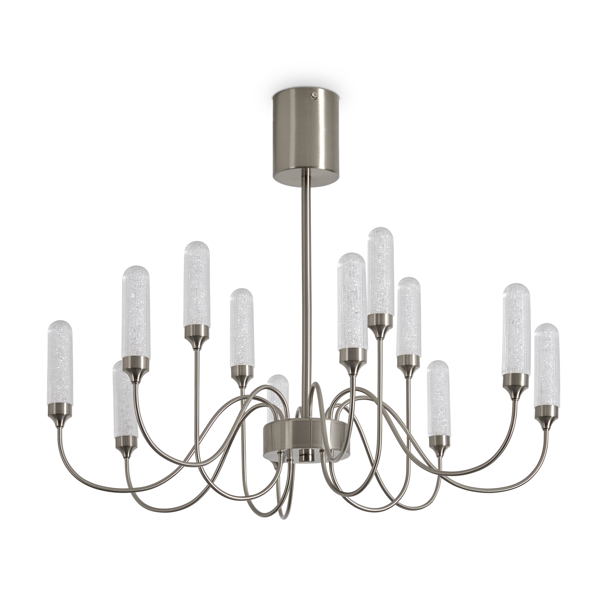 Арматура - металл в цвете латунь и никель. Основной акцент в дизайне люстр Alias сделан на акриловые плафоны, эффект пузырьков. Встроенный LED модуль 2700K. 2 дизайна подвесных светильников.