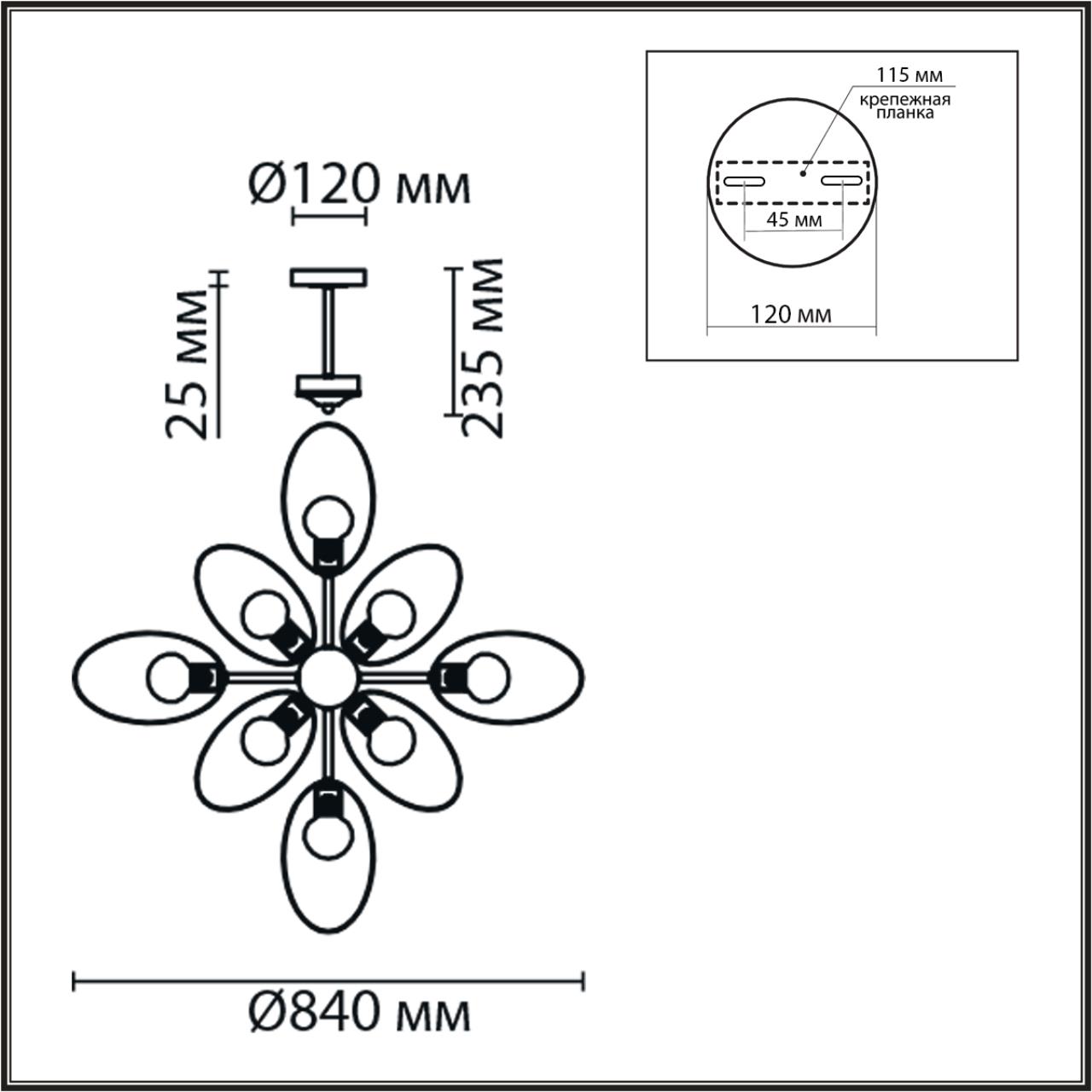 - Цвет плафонов: Черный
