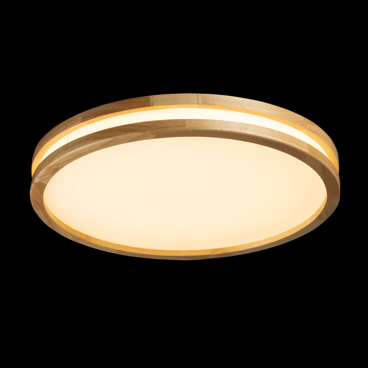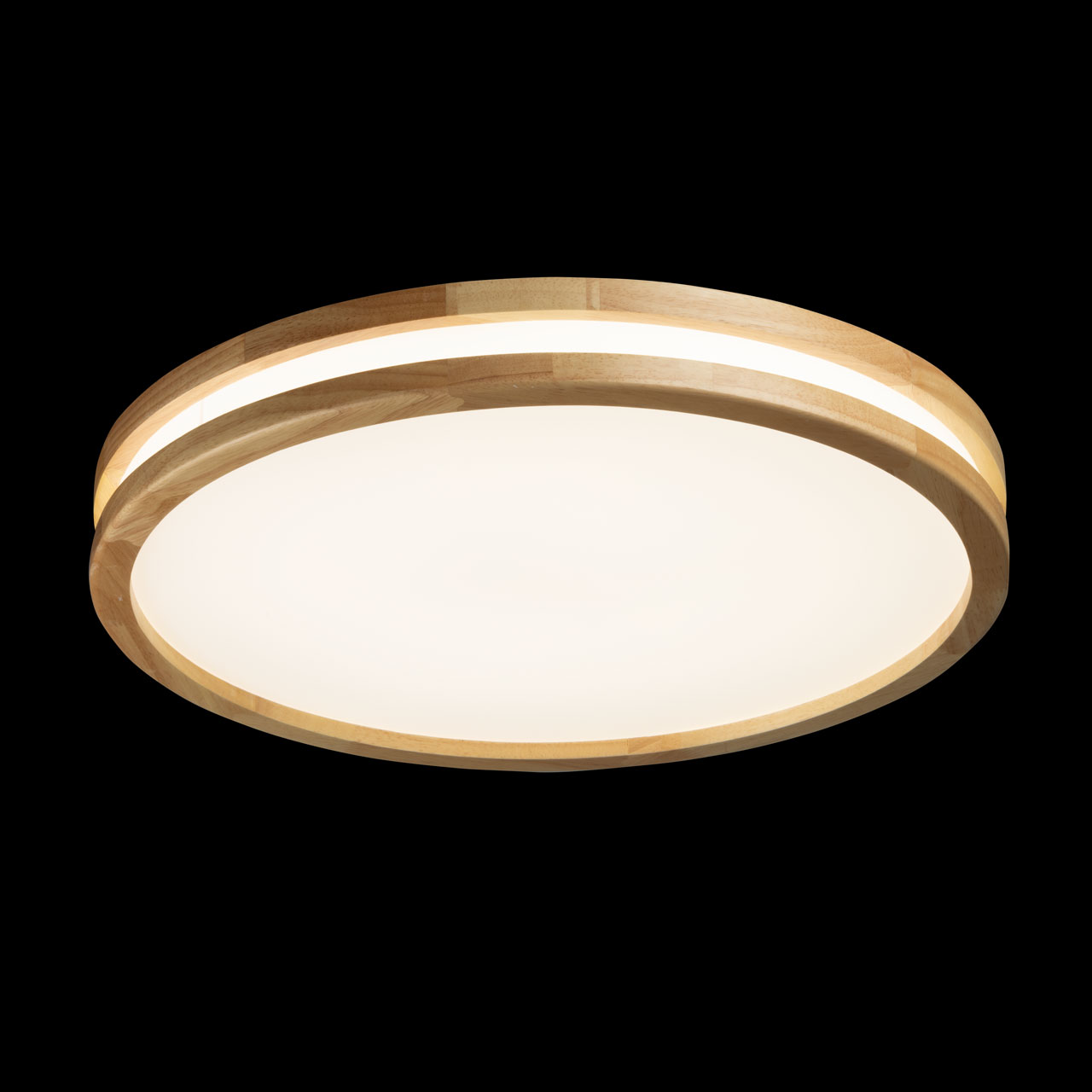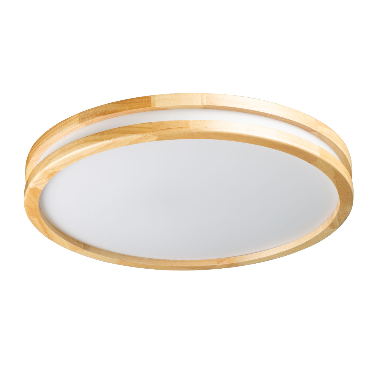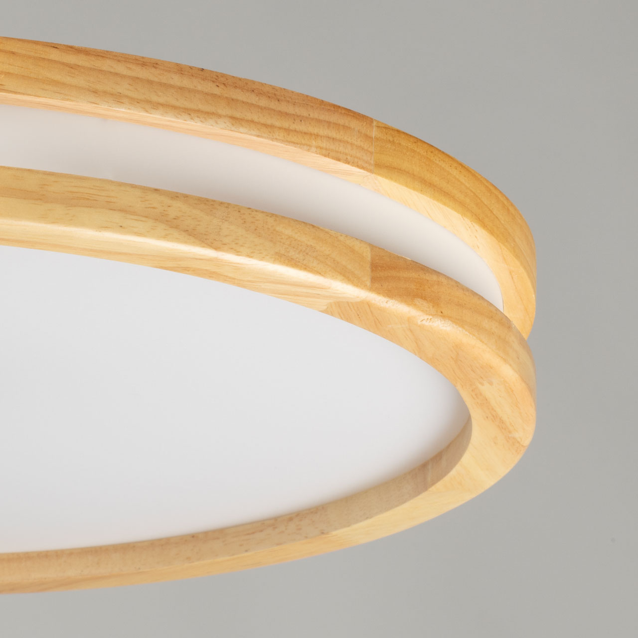 Металлическое основание светильника окрашено в белый цвет. Плафон выполнен из натурального дерева. Светодиодные источники света закрыты белым матовым акрилом.