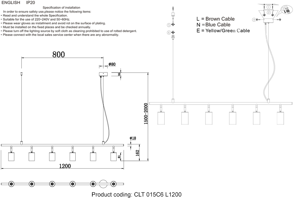 - Количество ламп: 6 шт