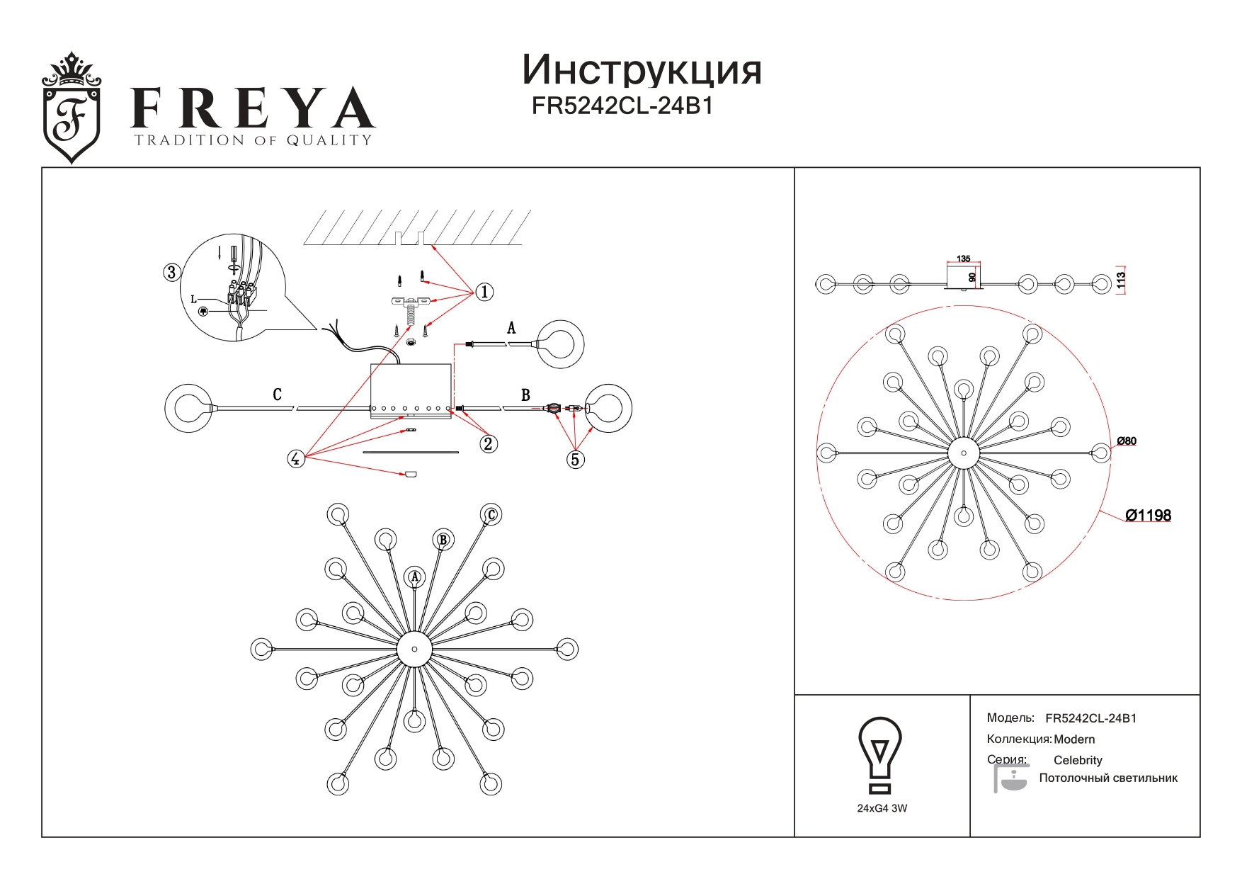 Данную модель FR5242CL-24B1 с быстрой доставкой спешите купить по цене 29 450 ₽ в магазине 220svet.ru