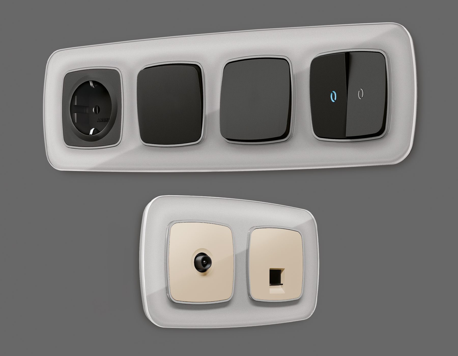 Многогранный ассортимент Ambrella Volt включает в себя механизмы, лицевые панели и рамки, а также комплекты, доступные в различных цветовых решениях. Продукция представлена в модульном исполнении, что позволяет гибко настраивать внешнийвид и функциональность. Вам будет легко заменить лицевую панель, рамку или механизм, найдя идеальное сочетание цветов.