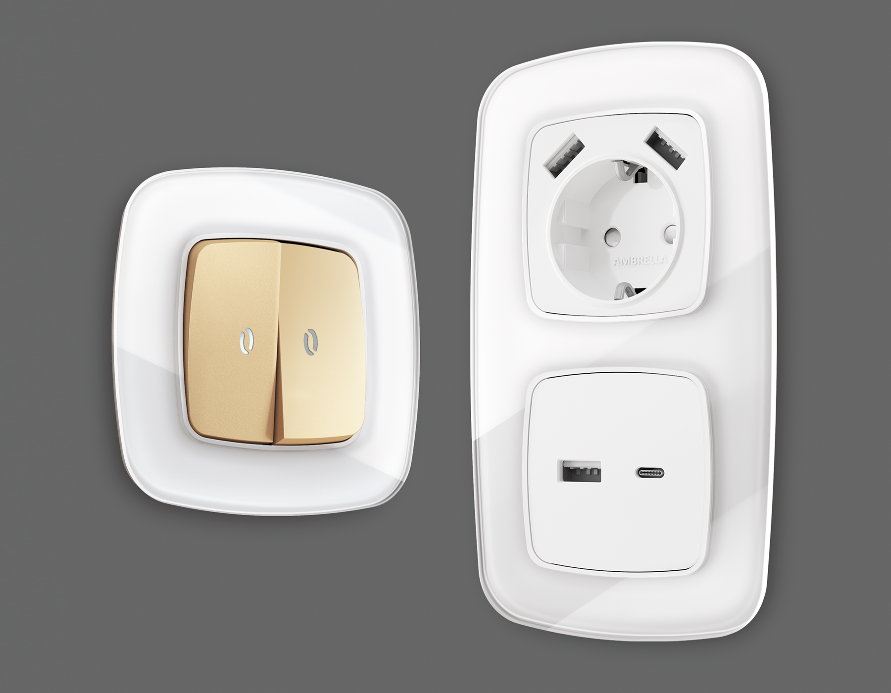 Многогранный ассортимент Ambrella Volt включает в себя механизмы, лицевые панели и рамки, а также комплекты, доступные в различных цветовых решениях. Продукция представлена в модульном исполнении, что позволяет гибко настраивать внешнийвид и функциональность. Вам будет легко заменить лицевую панель, рамку или механизм, найдя идеальное сочетание цветов.