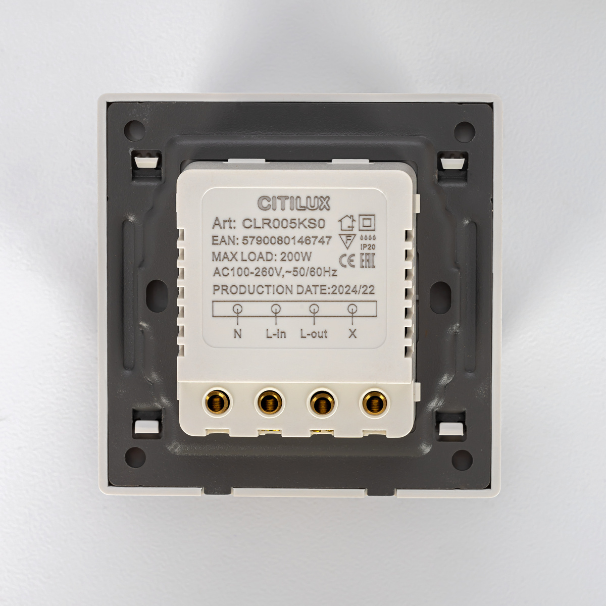 Корпус изделия изготовлен из прочного полимера белого цвета, поставляется в комплекте с монтажной коробкой.