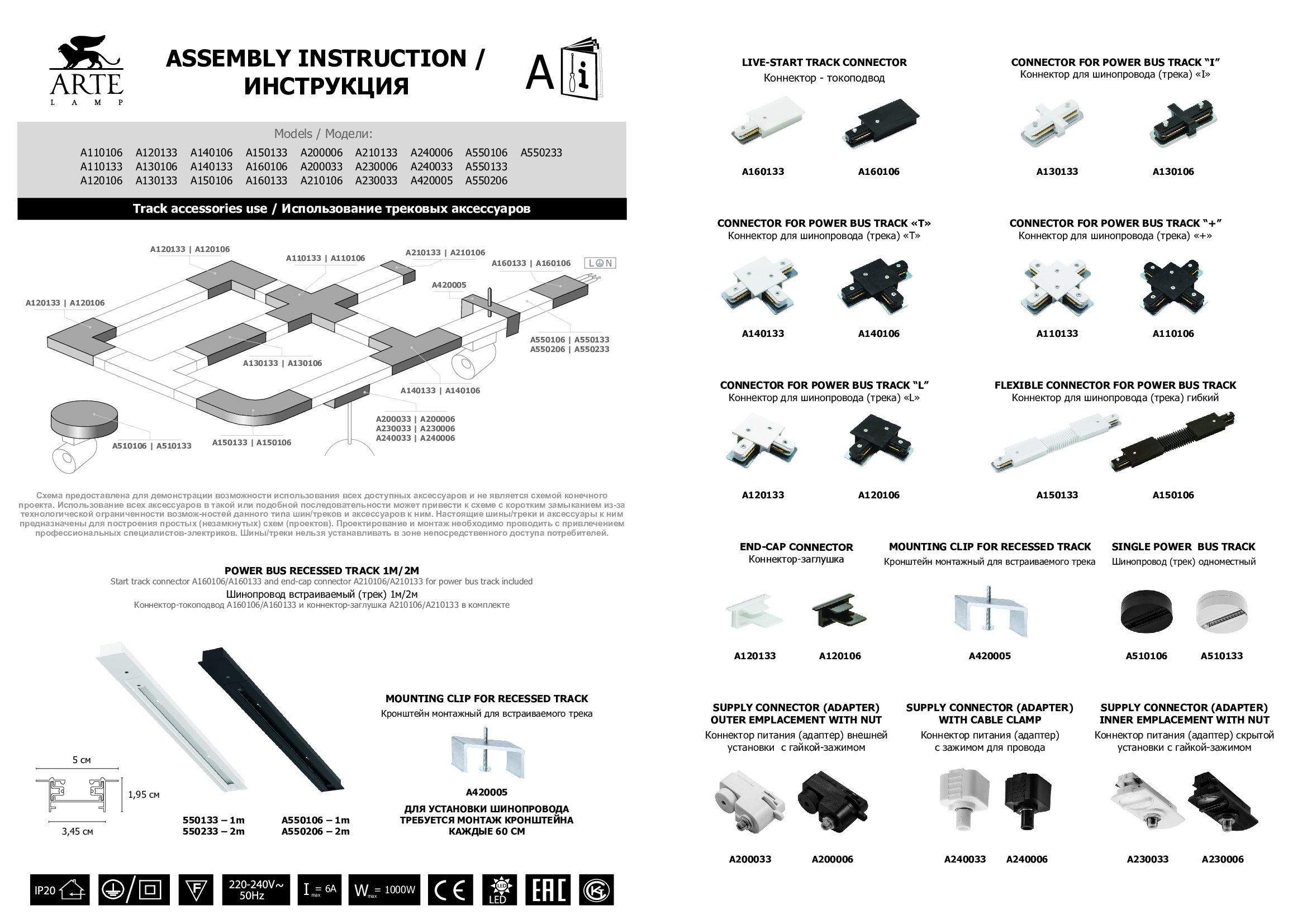 Купить "Шинопровод встраиваемый однофазный Arte Lamp Track Accessories A550133"