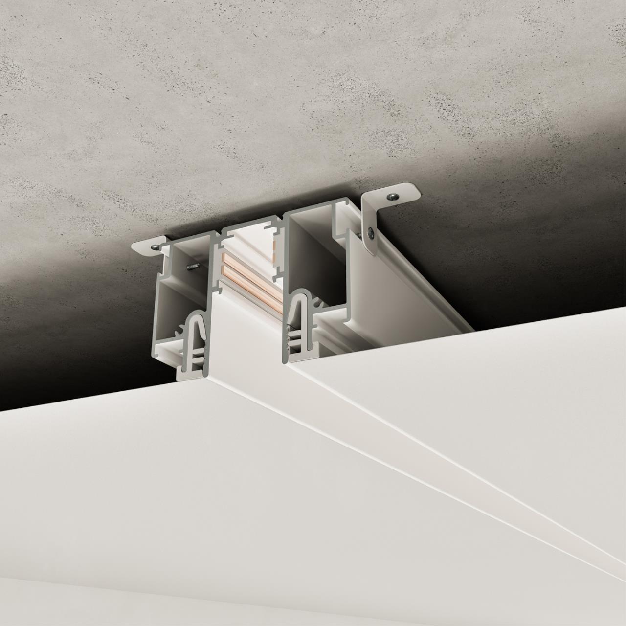 Шинопровод LumFer for NOVOTECH специально разработан для интеграции в натяжные потолки и совместной работы с низковольтными светильниками FLUM (48В). Эта уникальная система сочетает алюминиевый профиль с токопроводящими жилами и специальную технологию крепления CLAMP, позволяющую легко и надежно зафиксировать тканевые и ПВХ-полотна без риска их повреждения. За счёт увеличенной камеры узла примыкания CLAMP, обеспечивается высокая прочность фиксации и простота монтажа, что выгодно отличает данное решение от аналогов.