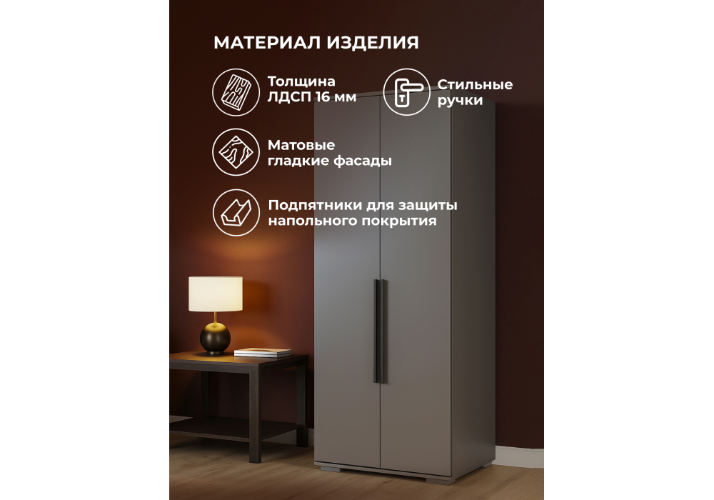 Купить "Шкаф двухстворчатый Woodville Филеста графит 664897"