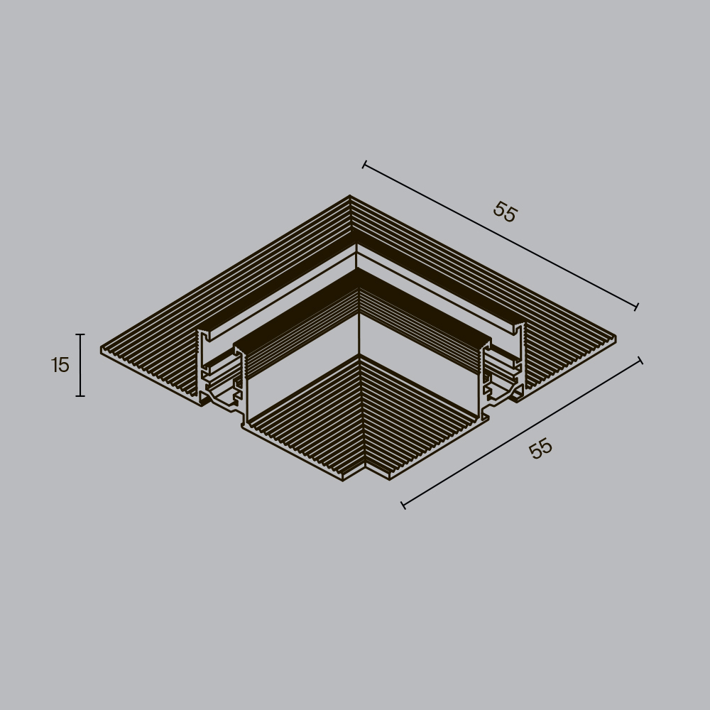 Угловой коннектор питания для трековой системы Levity, 7,5 см. Основное назначение - передача питания от одного отрезка шинопровода к другому в угловых соединениях