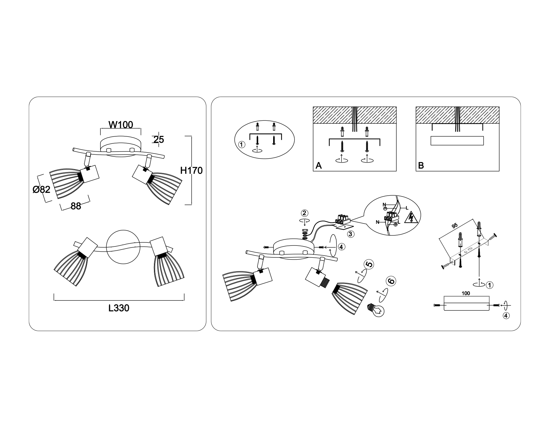 - Количество плафонов: 2