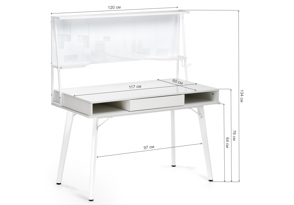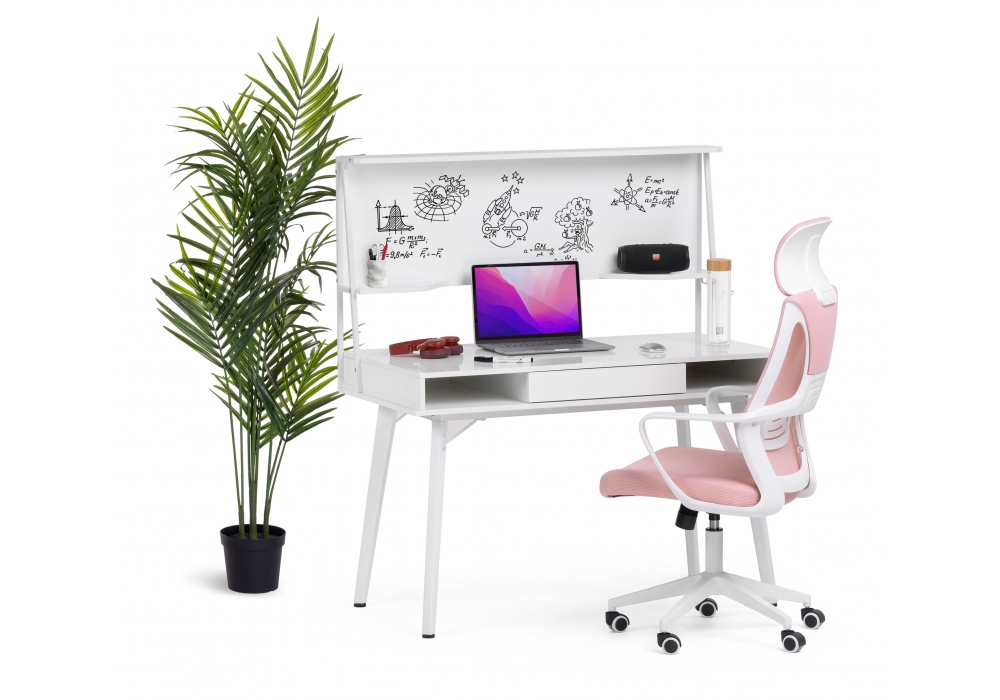 Стол оснащен магнитно-маркерной доской, двумя полками и крючком для наушников.
