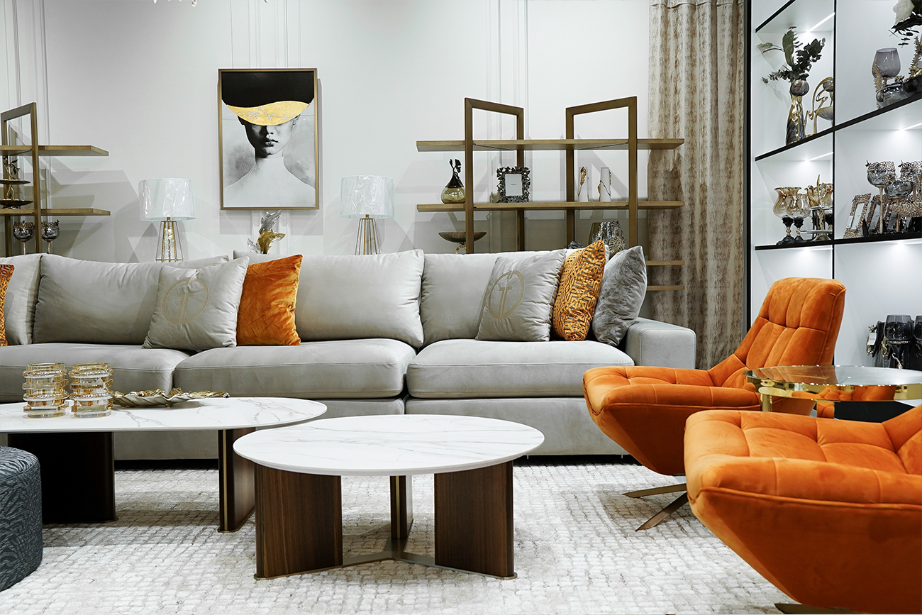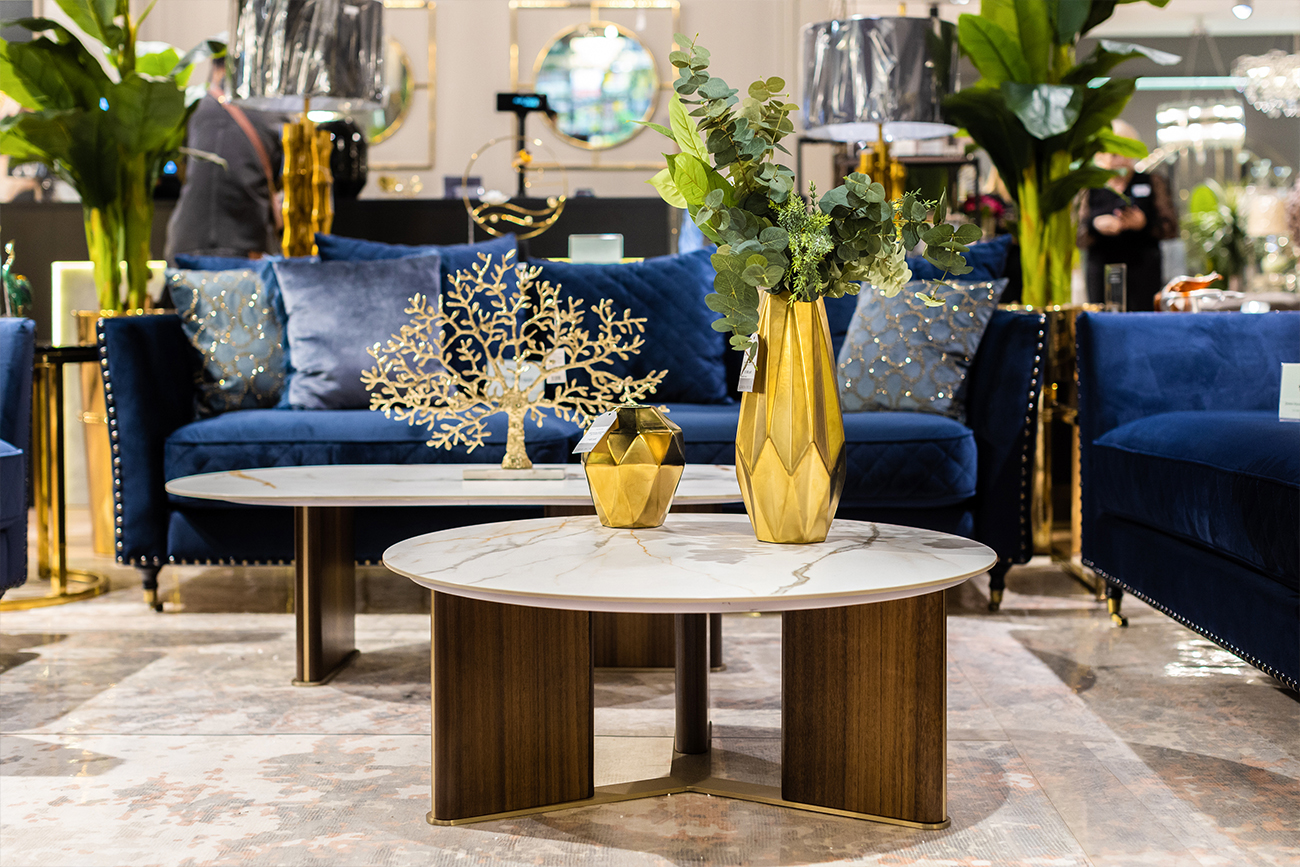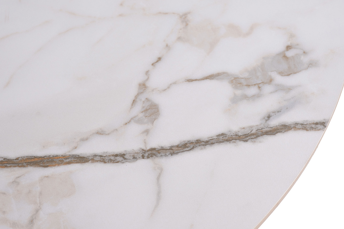 Элегантный круглый столик для гостиной или зоны отдыха, в котором сочетаются три стихии - камень, дерево и металл. Столешница изготовлена из прессованного при высокой температуре керамогранита, что обеспечивает высокую степень надежности и износостойкости. Опора из древесной плиты высокого давления (HDF) с отделкой из шпона, с акцентом на золотое основание.
