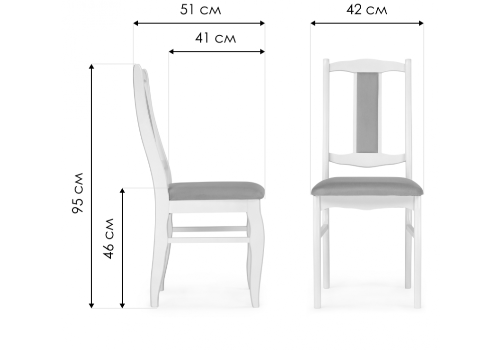 Материал каркаса - массив дерева; Материал сиденья - ткань; Материал обивки - ткань; Цвет ножек - орех; Цвет столешницы - орех; Ширина - 42; Глубина - 51; Высота - 95; Ширина сиденья - 42; Глубина сиденья - 41; Высота сиденья - 46;