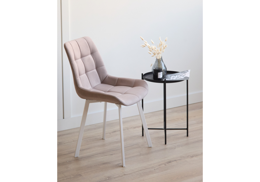 Материал каркаса - металл; Материал сиденья - велюр; Материал обивки - велюр; Цвет ножек - белый; Ширина - 50; Глубина - 60; Высота - 80; Ширина сиденья - 44; Глубина сиденья - 41; Высота сиденья - 48;