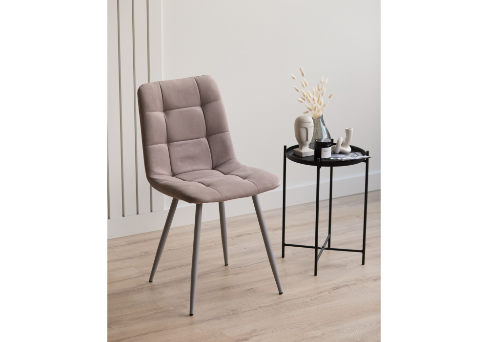 Материал каркаса - металл; Материал сиденья - велюр; Материал обивки - велюр; Цвет ножек - серый; Ширина - 43,5; Глубина - 50; Высота - 87,5; Ширина сиденья - 40; Глубина сиденья - 37,5; Высота сиденья - 49;