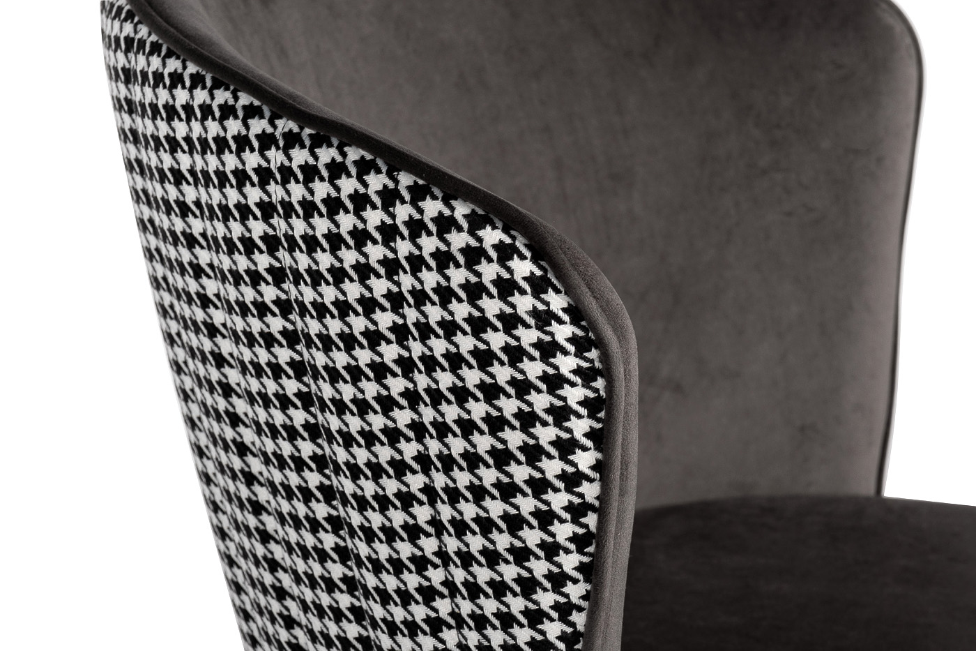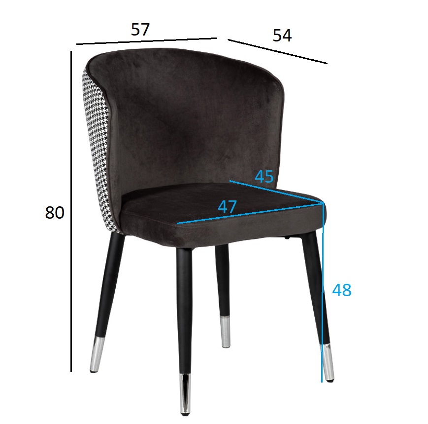 Оригинальный стул выполнен в комбинации приятного серо-коричневого велюра на лицевой части и текстиля с орнаментом "гусиная лапка" на тыльной части спинки. Оформление спинки - гладкая внутренняя поверхность и волнистая внешняя форма с вертикальной прострочкой. Габариты сиденья: ширина 47см, глубина 45см, высота от пола - 48см.