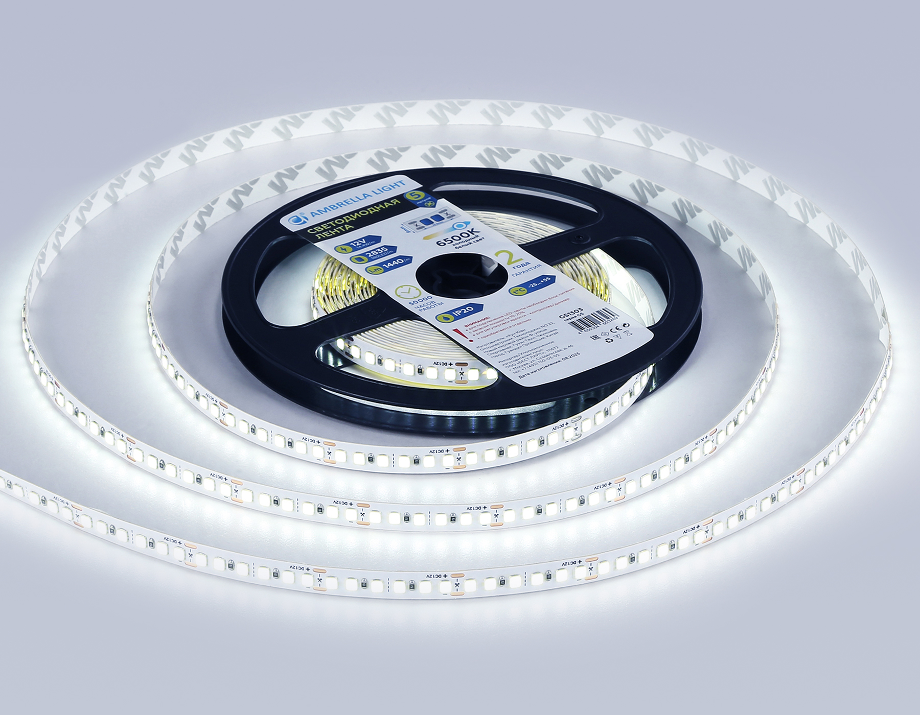 Светодиодная лента 14. 4W m/12V 6500K 5m Ambrella light LED Strip 12V GS1313 в Рязани