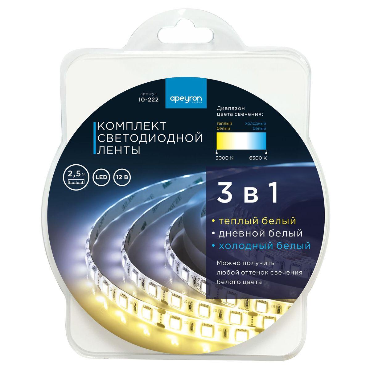 Купить "Светодиодная лента Apeyron 14,4W/m 60LED/m 5050SMD теплый белый/холодный белый 2,5M 10-222"