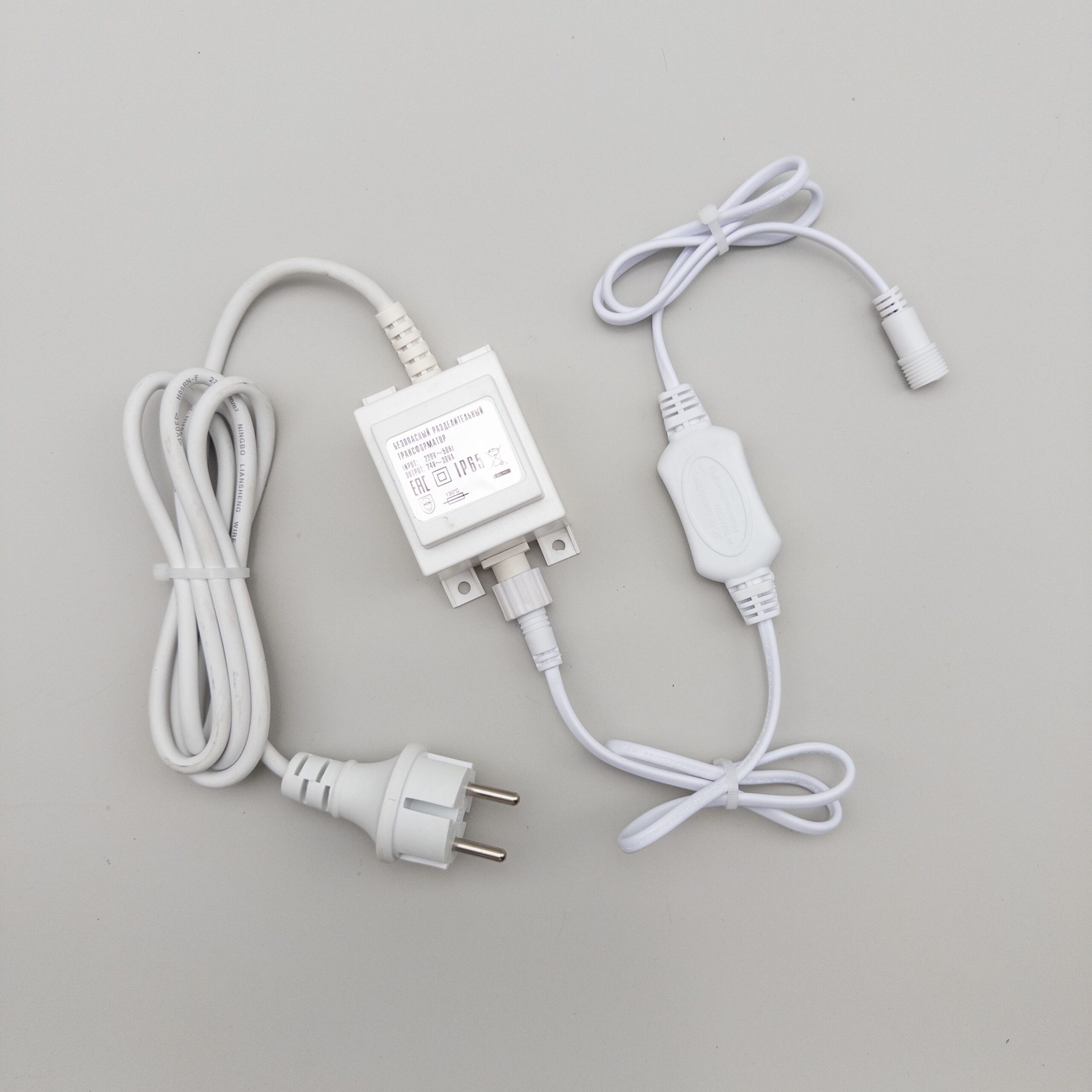 Трансформатор 30W с Выпрямителем для Нитей 24В, до 600 LED, Провод Белый Каучук, IP65 LTC PTR30-3A-W в Рязани