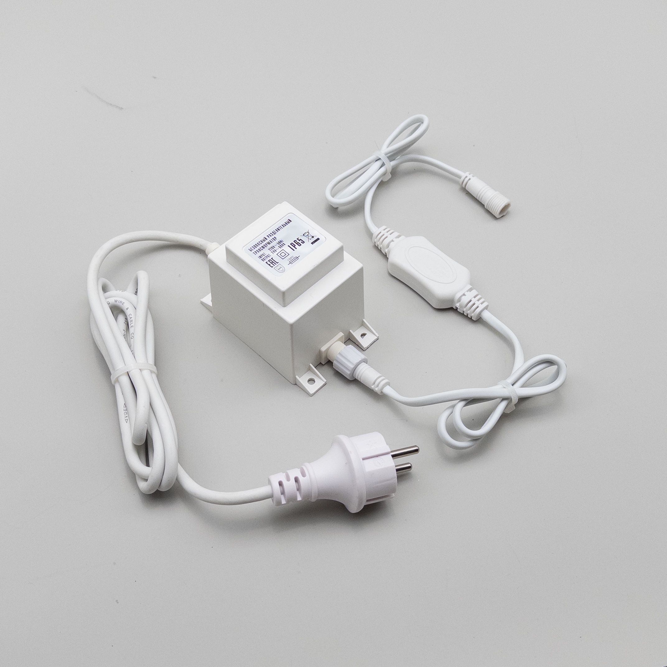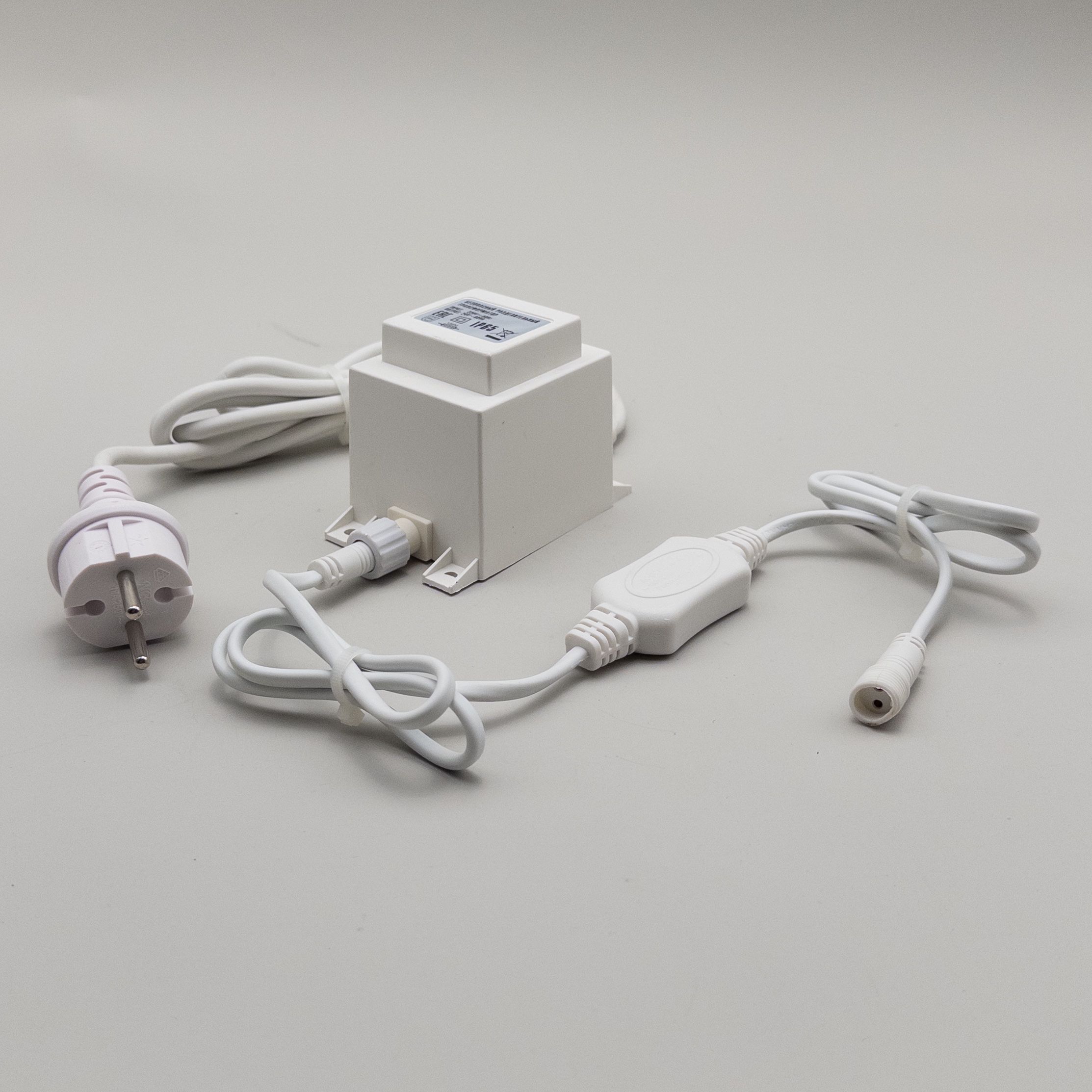 Трансформатор 60W с Выпрямителем для Нитей 24В, до 1000 LED, Провод Белый Каучук, IP65 LTC PTR60-3A-W в Рязани