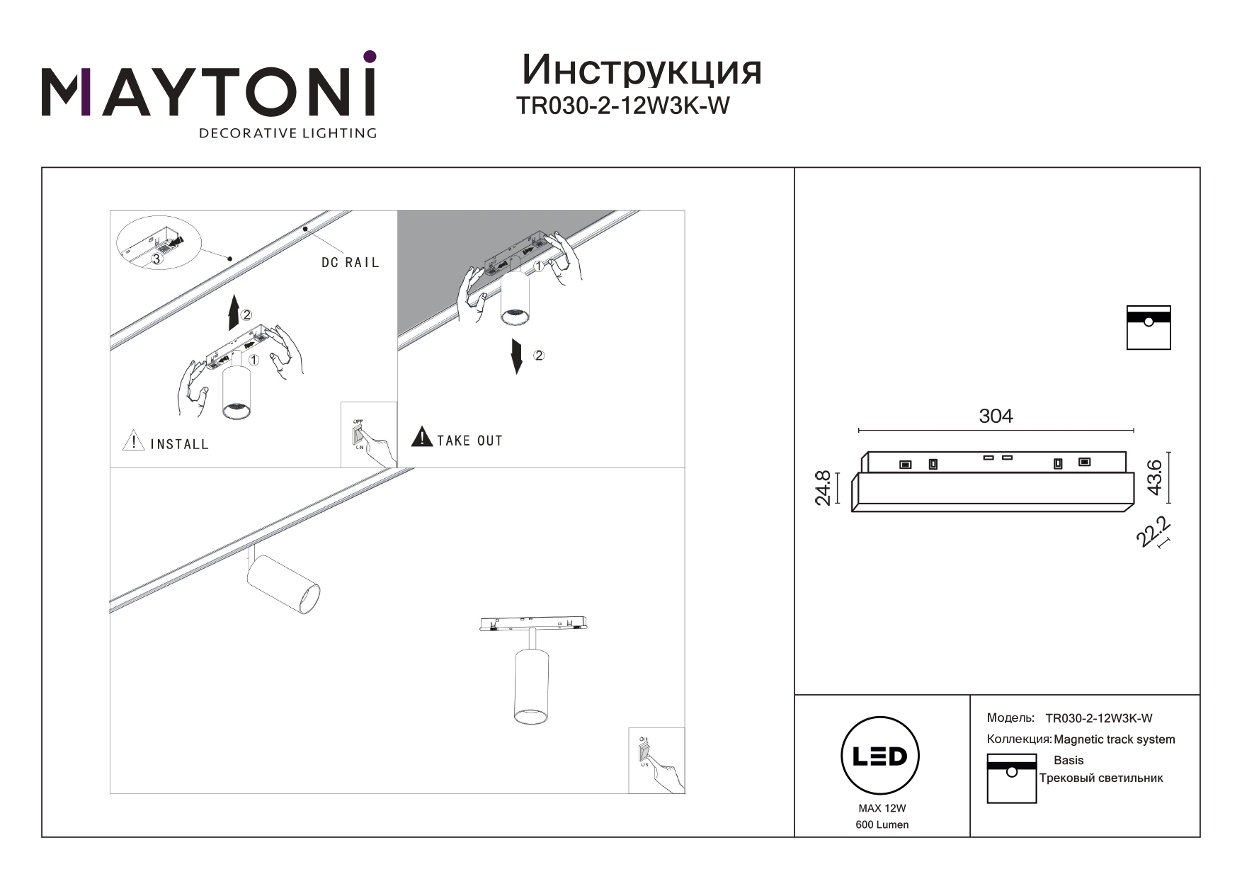 - Общая мощность: 12 W
