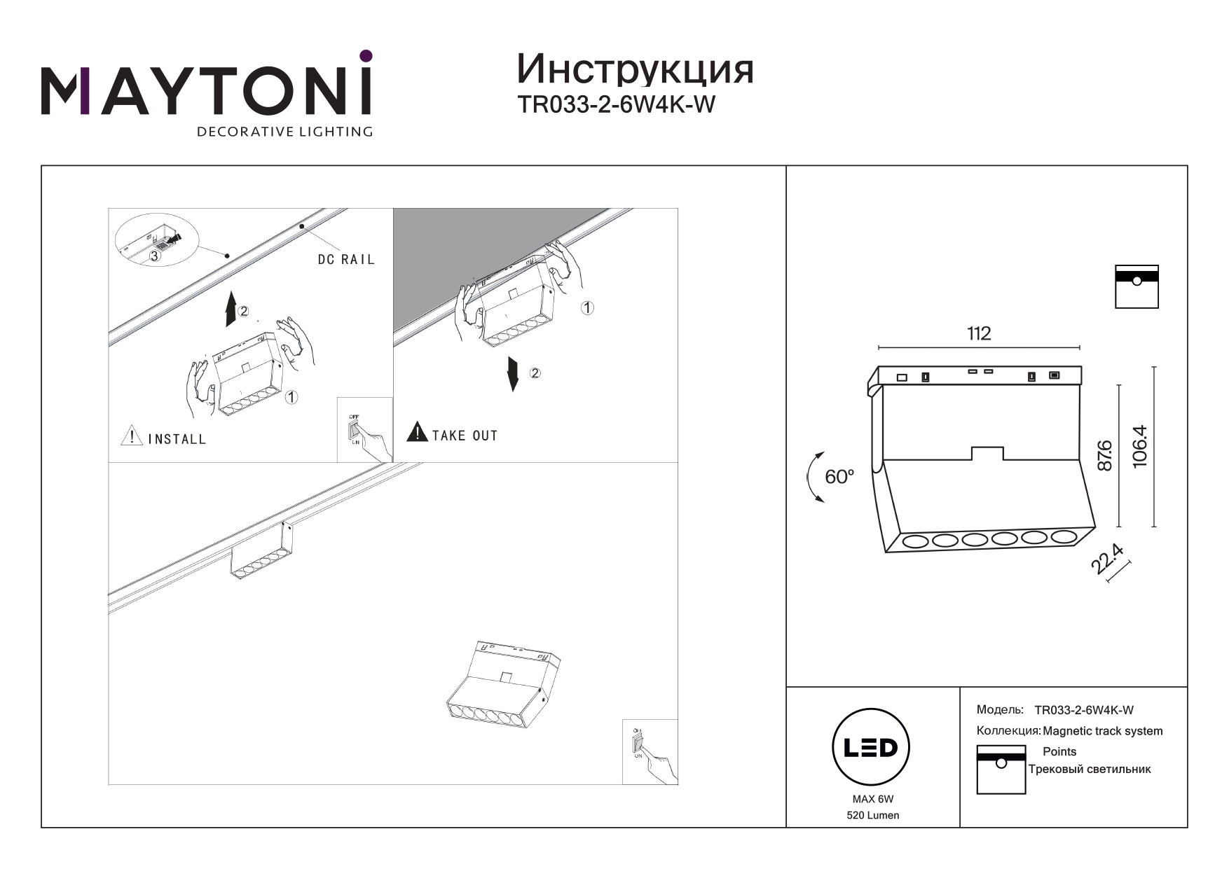 Все характеристики TR033-2-6W4K-W
