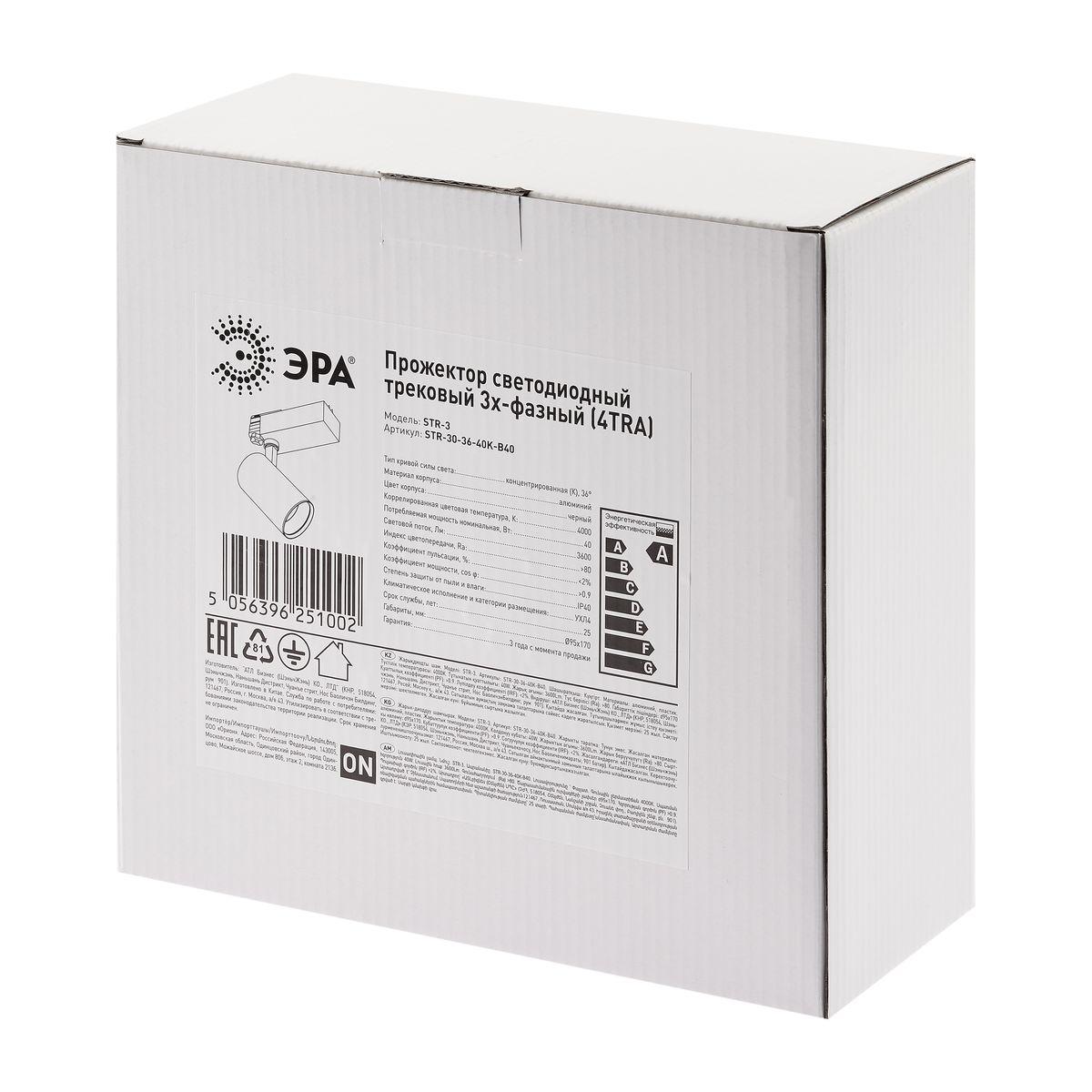Трековый светодиодный светильник ЭРА SТR-30-36-40K-B40 Б0049768 в Рязани