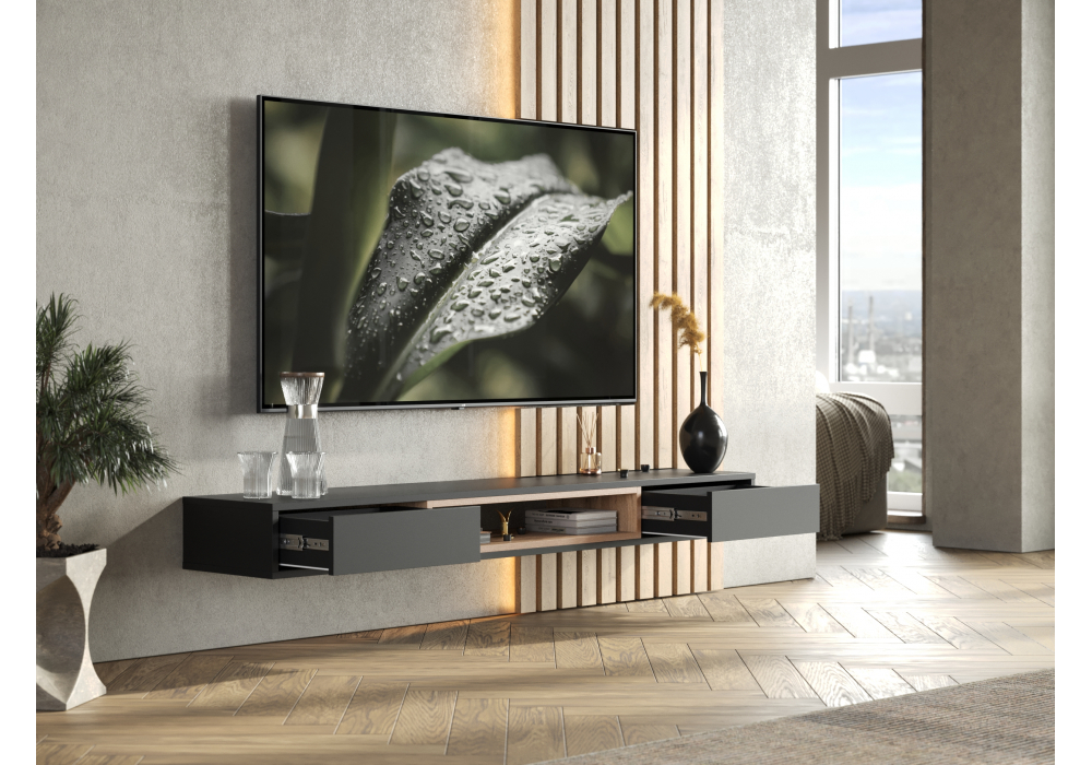 Купить "ТВ-тумба Woodville Делора 1,6м черный / дуб вотан 674716"