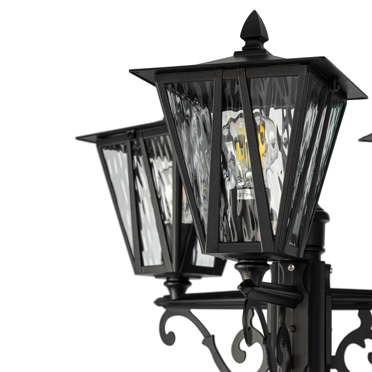 В изделии используются 3 лампы с цоколем Е27, максимальной мощностью для ламп накаливания 40Вт. Рекомендуем устанавливать светодиодные прозрачные филаментные лампы. Наземный светильник с закрытыми плафонами имеет высокую степень защиты — IP54