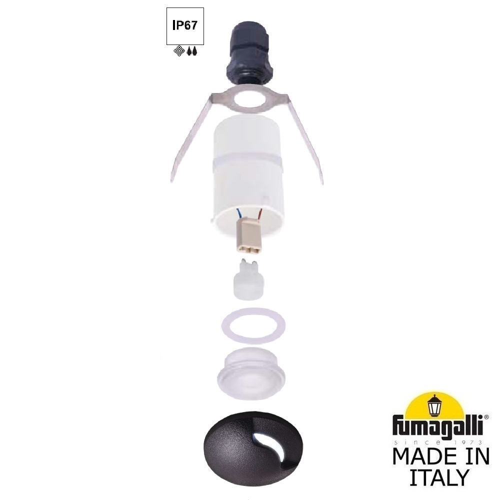 Встраиваемый уличный светильник FUMAGALLI серии TERESA, модель TERESA 1L - изготовлен в Италии. Основное предназначение - декоративная подсветка снизу и сверху фасадов зданий, светового дизайна, освещение настилов из декинга и террасной доски. Врезается в потолки, подшивку фронтонов и другие материалы, в которых можно прорезать отверстие под светильник. Фиксация на месте установки происходит с помощью пружины, установленной на корпусе. Могут применяться для декоративного и дизайнерского освещения внутри помещений. Светильник TERESA расчитан на сложные условия эксплуатации: светильник имеет прочный влагонепроницаемый корпус и не боится льда, воды, механической уборки. Корпус изготовлен из современного вандалостойкого, негорючего полимера RESIN не требующего окраски. Прочного, окрашенного в массе, не ржавеющего и не выгорающего на солнце. Все светильники пыле-влаго защищены по стандарту IP67. Корпус ландшафтного светильника не проводит электричество, относится к 2 классу электробезопасности. Рассеиватель выполнен из антивандального, не мутнеющего и не горючего PMMA. Срок службы светильника - не менее 20 лет. Не требуется трансформатор. Напряжение питания - 220 В. Температура использования от -60 до +90. При заказе требуется выбрать цвет корпуса.