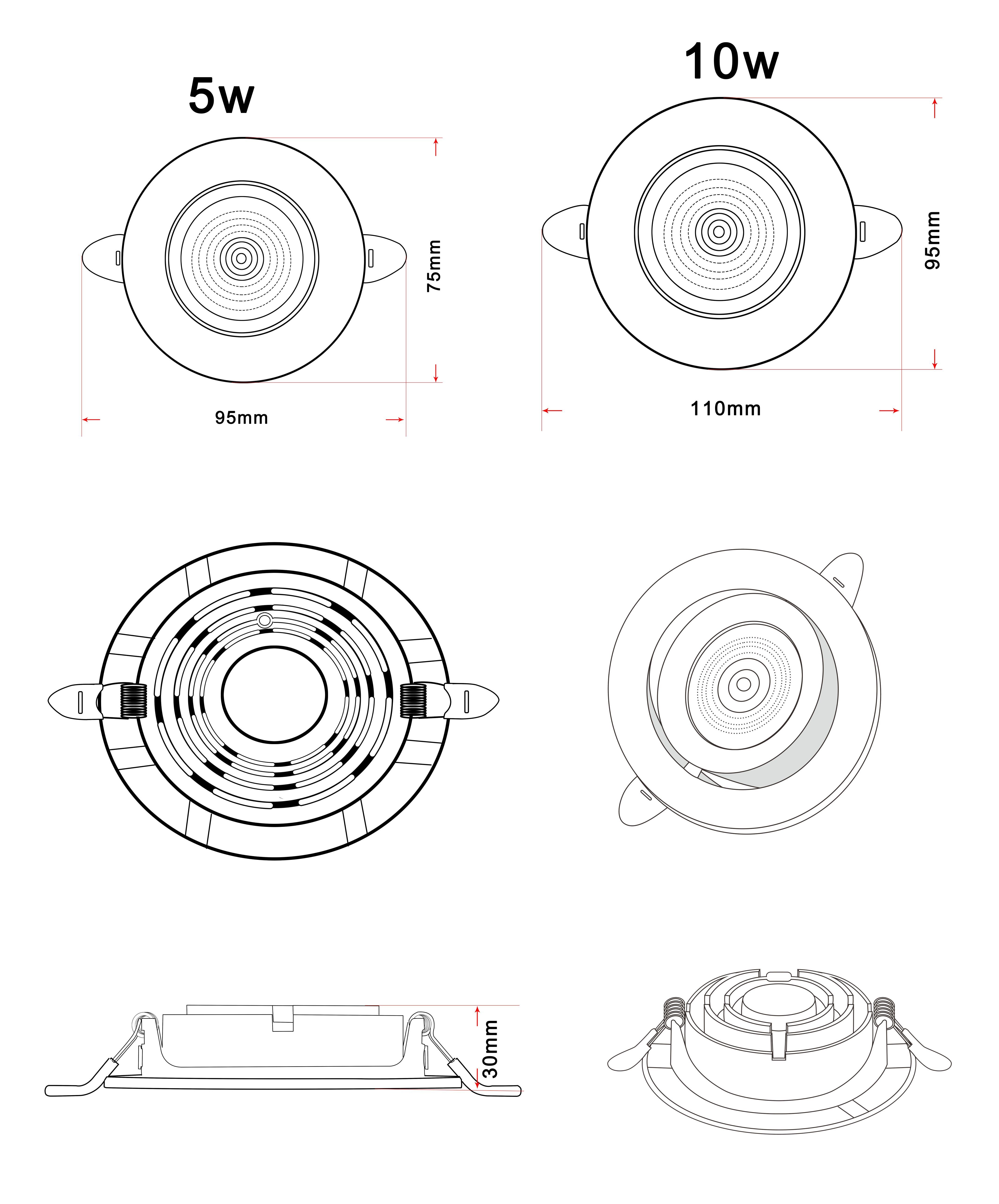 - Диаметр врезного отверстия: 75 мм (7.5 см)