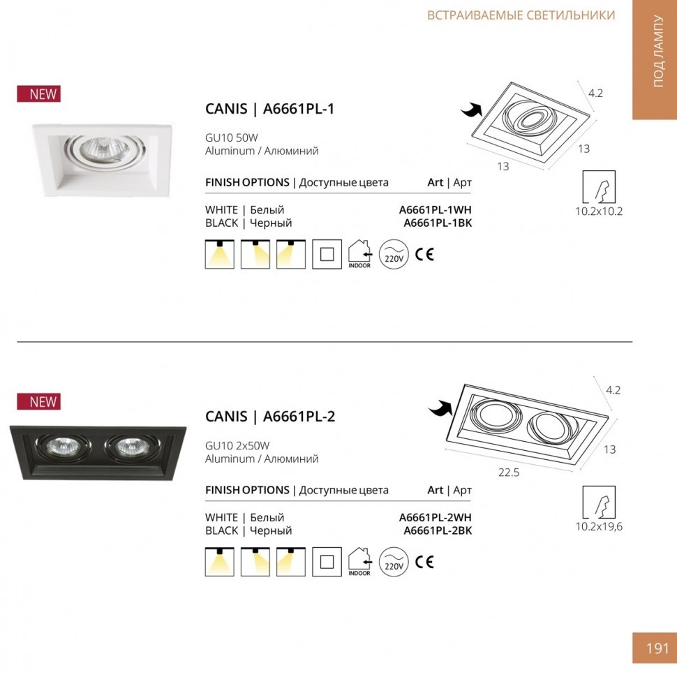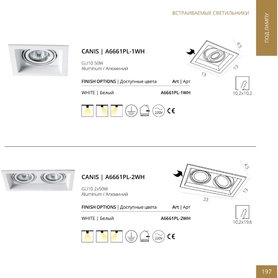 Встраиваемый светильник Arte Lamp A6661PL-2WH в Рязани
