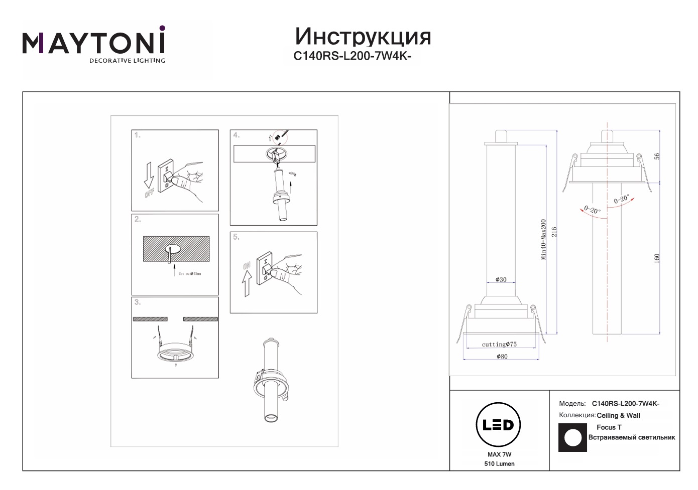 Все характеристики C140RS-L200-7W4K-B