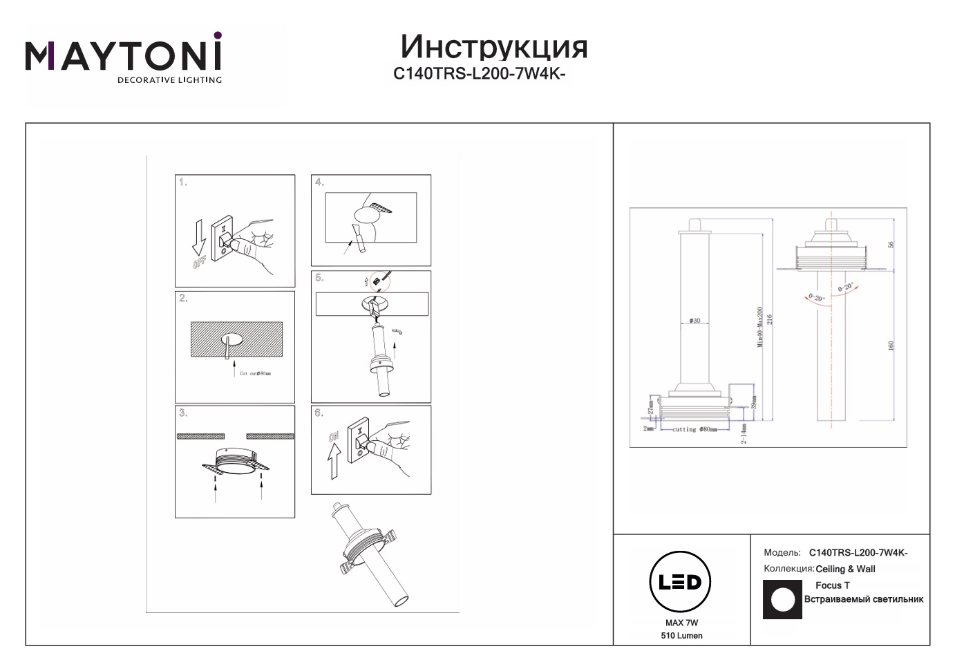 Все характеристики C140TRS-L200-7W4K-BBS