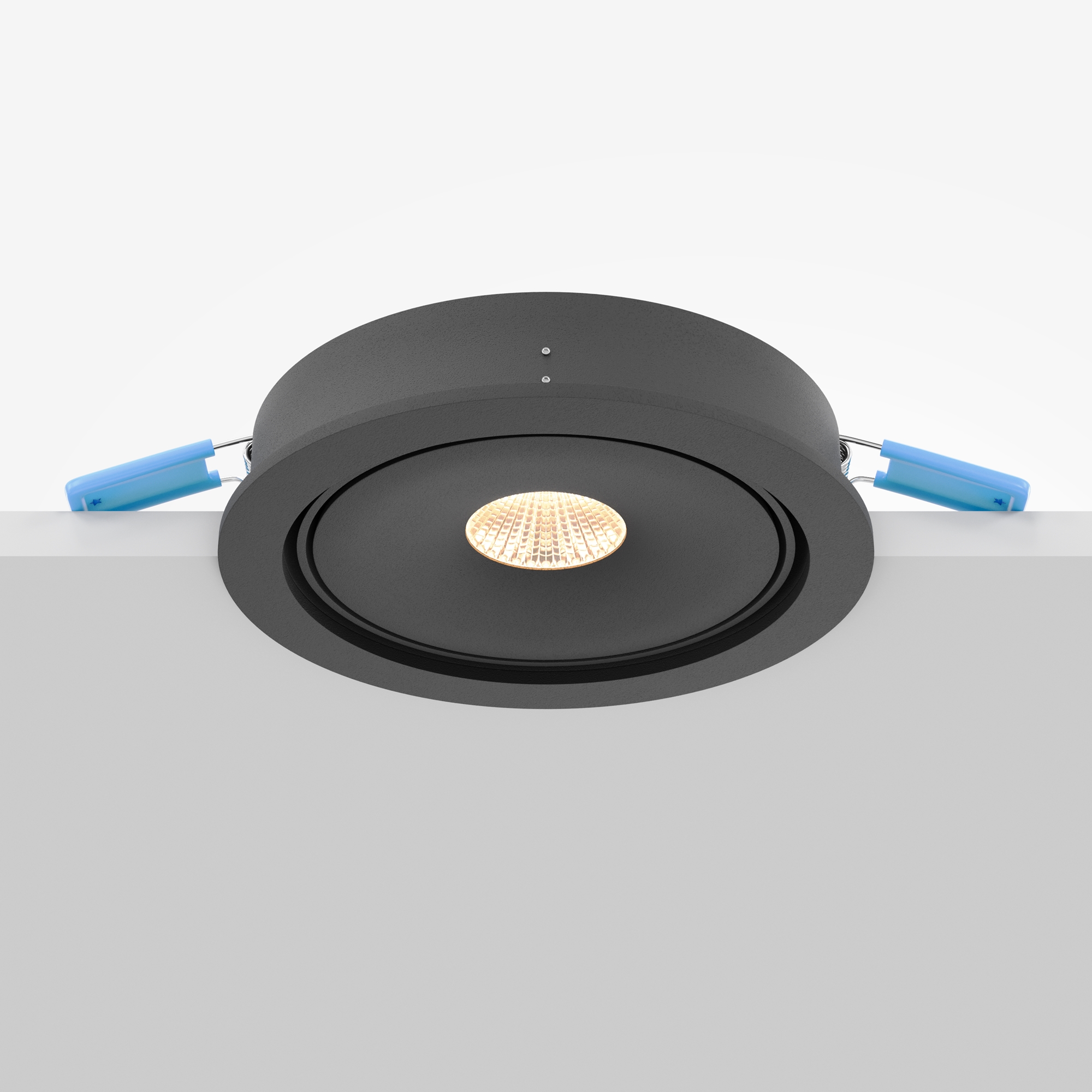 Металлический корпус в двух вариантах: встраиваемый и встраиваемый под шпаклёвку. Цвета: чёрный и белый. Поворотный механизм. LED-источник цвета с переключателем цветовой температуры (ССТ). Цветовая температура – 3000К, 4000К или 6000К. Высокий показатель цветопередачи - CRI>90. Совместимость с драйверами DALI.